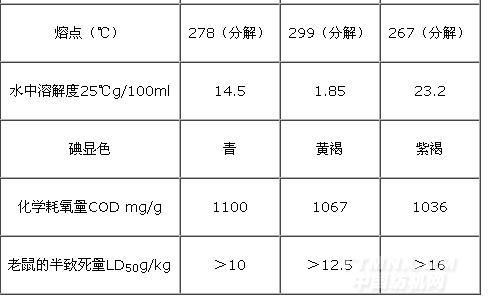 商品環糊精的純度可達99%,含水分為9%±1%,灰分0.02%以下。α—、β—和γ—環糊精三個品種的主要性能如表1,所示。