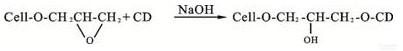 第二步在NaOH溶液中,環氧化纖維素上的環氧基與β—環糊精(CD)上的羥基發生反應,如下: