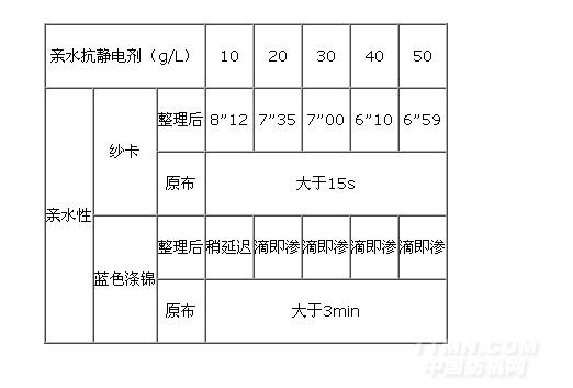 4.1親水抗靜電劑的不同用量對織物親水效果的影響(結(jié)果見表1):
