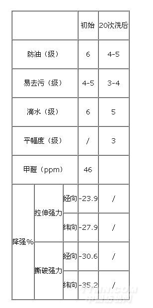 從表中可知三防和易去污兩只產品復配,防水和防油性能較好,但是易去污性能比HPC-6差半級。
