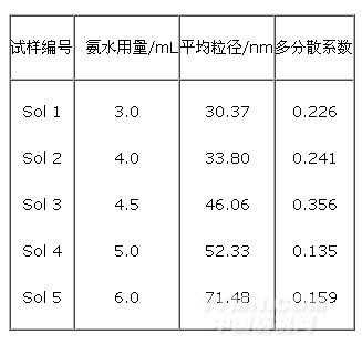 表1  氨水用量對二氧化硅溶膠粒徑的影響