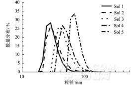 圖1  溶膠試樣Sol 1~5粒徑分布圖