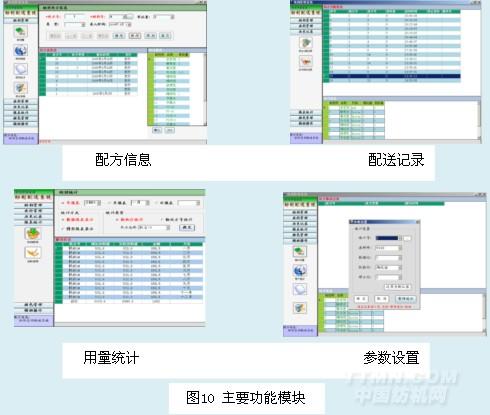 監(jiān)控功能:在中央控制中心的監(jiān)控電腦用來(lái)監(jiān)控各機(jī)臺(tái)的用料情況,并實(shí)現(xiàn)對(duì)各控制點(diǎn)的處方集中管理,為上層管理者提供現(xiàn)場(chǎng)數(shù)據(jù),以便進(jìn)行成本統(tǒng)計(jì)。