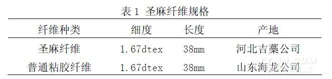 2.1實驗樣品實驗中所用圣麻纖維和粘膠纖維規格見表1。