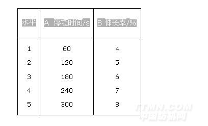 織物試驗分3千方案:拉伸停頓和循環拉伸方案:拉伸停頓二因子五水平正交試驗方案。