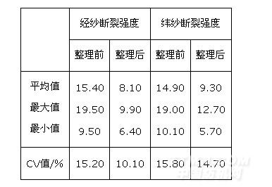 織物整理前后經、緯紗斷裂強度的試驗結果如表2所示。