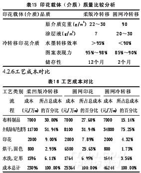 表15中,涂層液的多少,決定了印花介質的成本;水墨轉移效率一方面體現了工藝品質,再有轉移效率低的對環境不利;圖案表現力更說明工藝品質的優劣。