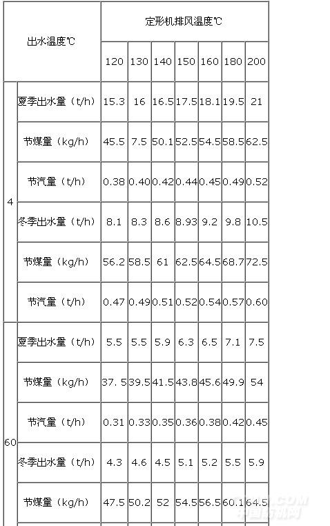 注:1、以上數據均為一臺定形機(兩臺換熱器)的數據。
