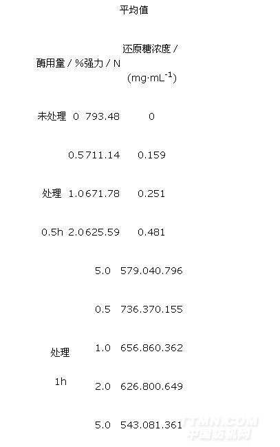 對應表1和表2工藝處理的織物進行了頂破強力和處理殘液的還原糖含量測試,結果見表7。