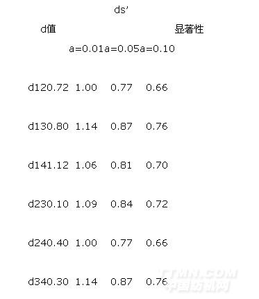 表6 對表2中各水平的Scheffé法兩兩比較結果