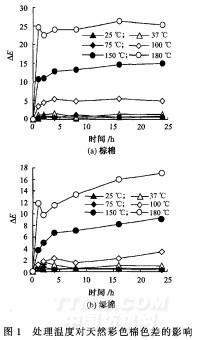 較重要的因素。短時問(特別是2~3 min)內高溫條 件對天然彩色棉色澤的影響本文并未涉及,這有待 進一步的研究。