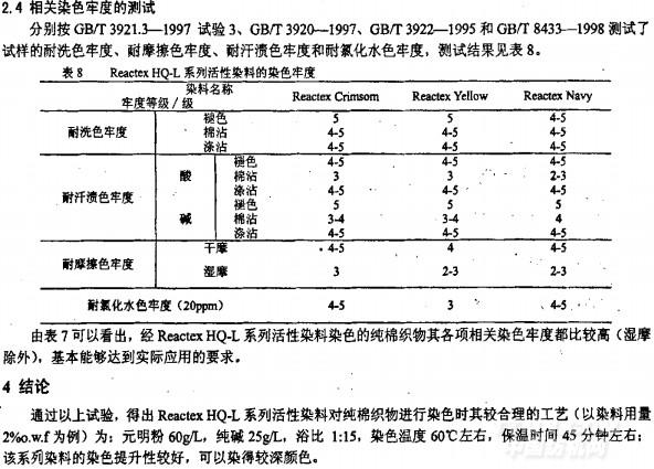 Reactex HQ一L系列活性染料對(duì)純棉織物的染色工藝研究