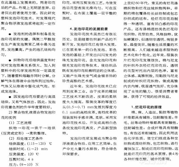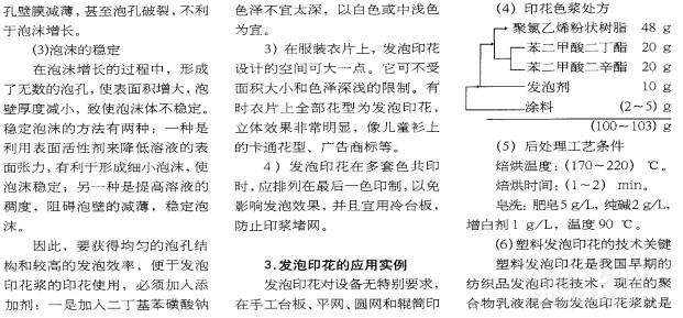化學發泡劑的種類很多,約有1 ooo~0以上,但適宜于織物發泡印花漿的發泡劑并不多,因為 作為織物發泡印花漿要有一定的 分解溫度和發氣量。