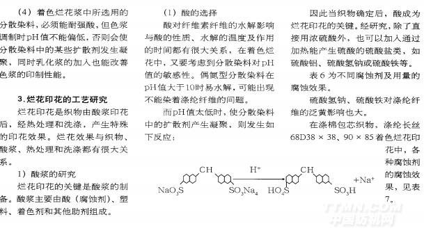 (2)酸漿中糊料的選擇用于爛花印花酸漿的糊料,必須具備下列條件。
