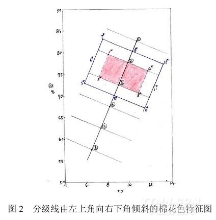 再看在紅色區(qū)域外圍,試樣5*比試樣11*:又白又亮,反而前者評4級,后者評3級。真是不三不四的棉花評成顛三倒四。同理,試樣6*評3級,試樣12*反而評2級。各個試樣按此舉一反三的彼此比較,不難看出存在的問題。