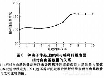 (3)隨著處理H,~l'n7的延長,纖維表面自由基數量增加不明顯,而板材強度變化亦不明顯。因而,處理時間不宜過長。