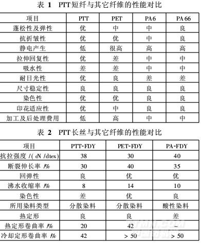 狀,呈現(xiàn)出明顯的“Z”字構(gòu)象。因而, PTT大分子具有彈性,較之PET和錦綸纖維(PA6和PA66)具有更加優(yōu)異的性能(表1和表2)。