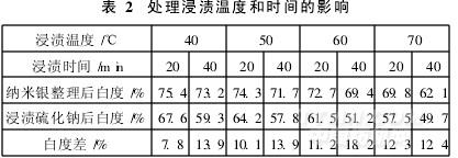 改變浸漬溫度和時間,對織物進行納米銀抗菌整理,結果見表2。