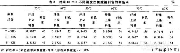 測定同一時間不同溫度次氯酸鈉剝色的剝色率,結果如表2所示。