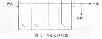 (3)擋板式水解酸化池 又稱折流式厭氧反應器(Anaerobic Baffled Reactor)。如圖3所示,廢水通過厭氧菌水解胞外酶的作用,使長鏈小分子有機物和不溶性有機物水解為可溶性有機物,提高廢水的可生化性,減輕后續處理負荷[2]。