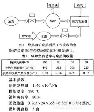 工業鍋爐的平均熱效率為60%~85%,其排煙溫度一般在250~350℃,特別是導熱油爐,排煙溫度均在280(℃以上。利用導熱油鍋爐排煙余熱將冷凝水加熱蒸發,產生0.6MPa的飽和蒸汽(最高0.8MPa)進入蒸汽系統,可供給工廠使用,達到節能目的。魯泰紡織股份有限公司擁有1.46X10mJ(350萬大卡)導熱油爐3臺,鍋爐出煙口溫度約280oC,為其分別安裝一臺余熱回收器,將排煙溫度降至180℃,可產生0.6MPa的飽和蒸汽供生產使用。