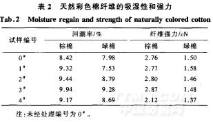 2.1 天然彩色棉纖維的吸濕性、強力和色差