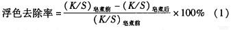 浮色去除率用電腦測色配色儀測定染色織物皂洗前后的K/S值,并用式(1)計算浮色去除率: