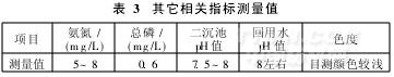 表3數據顯示,目測色度能滿足接管要求,氨氮和總磷測量值比接管標準略大,需進一步處理。