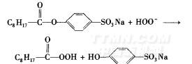 NOBS作為一類潛在的過酸,在雙氧水漂白過程中起著傳遞有效氧的特殊作用。HO在堿性條件下,可分解生成HOO一,HOO一能夠與活化劑NOBS發(fā)生親核取代反應(yīng),生成過壬酸,反應(yīng)如下: