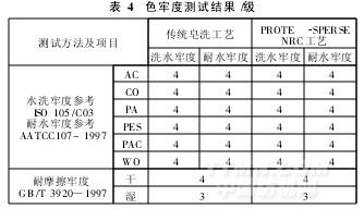 (1)使用PROTE(-SPERSE NRC皂洗后,水洗、耐水及摩擦牢度與常規(guī)皂洗工藝相同。