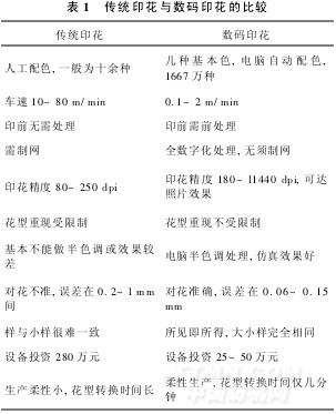 2.1數碼噴墨印花與傳統印花對比(見表1)