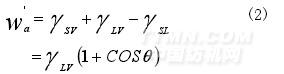 大部分的表面活性劑主要是通過粘合劑作用吸附在織物表面的,在這里就引入了吸附理論。吸附理論是建立在熱力學平衡概念上的。據此推導出了粘合功與內聚功。Dupre'方程也可定義為