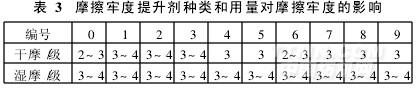 表3中,三種摩擦牢度提升劑對(duì)于摩擦牢度的提升作用有所不同,其中摩擦牢度提升劑YL效果明顯,這與三種摩擦牢度提升劑的結(jié)構(gòu)類型有關(guān)。聚氨酯類的摩擦牢度提升劑YL,可在麂皮絨表面形成具有彈性且滑爽的膜,從而起到一定的保護(hù)作用,同時(shí)也降低了織物表面的摩擦因數(shù);摩擦牢度提升劑SL屬于有機(jī)硅類聚合物,它雖然摩擦因數(shù)較小,但是對(duì)織物表面的保護(hù)作用不如聚氨酯類,而且因其易燃,對(duì)阻燃效果也有不利的影響;摩擦牢度提升劑AM屬于三聚氰胺類,主要起一定的交聯(lián)作用,但是麂皮絨類面料屬于滌綸超細(xì)纖維織物,采用分散染料染色,三聚氰胺類的交聯(lián)作用對(duì)阻燃劑和分散染料幾乎不起作用,因此對(duì)于摩擦牢度沒(méi)有改善。故在研究柔軟劑對(duì)摩擦牢度的影響試驗(yàn)中,選用摩擦牢度提升劑YL。