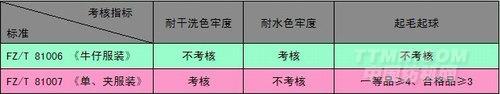 2、《牛仔服裝》,適用于以純棉、棉纖維為主混紡、交織的色織牛仔布為主要原料生產的普通及彩色牛仔服裝。《單、夾服裝》,適用于以棉、麻、 絲、化纖及其混紡織物等為原料,成批生產的單、夾服裝。這兩個標準是有一些交集的,例如一件傳統梭織普通牛仔布加工的服裝成品可以選擇《牛仔服裝》標準測 試,也可選擇《單、夾服裝》標準。通過表二可以發現,這兩項標準的考核指標有很多不同。《牛仔服裝》不考核干洗尺寸變化率,《單、夾服裝》需要考核。而 “耐水色牢度”指標,《牛仔服裝》中要考核,《單、夾服裝》不考核。那為什么說這些呢,就拿“起毛起球”這項指標來說,《單、夾服裝》標準中明確規定,優 等品、一等品起毛起球允許程度≥4、合格品起毛起球允許程度≥