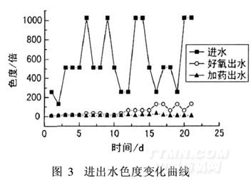 定期取組合工藝的進水、A段、O段、混凝沉淀出水,分析其中的COD、色度、pH值的變化情況。