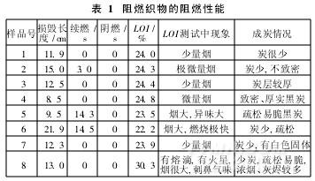 表1是涂布有不同阻燃涂層膠滌綸織物的阻燃性能。