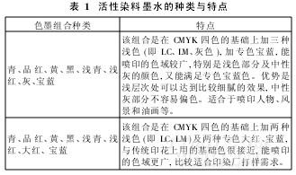 棉針織物印花一般采用活性染料,目前,DyStar公司的活性染料的基礎色有青(Cyan)、品紅(Magenta)、黃(Yellow)、黑(Black)、淺青(LightCyan)、淺紅(LightMagenta)、灰(Grey)、大紅(Red)、寶藍(Blue)。但數碼噴射印花機目前最多只能用8種顏色,用戶可以根據需求選擇不同的組合(表1)。 棉針織物的圖案設計一般都比較復雜,顏色層次較豐富、細膩,建議使用第一組墨水組合。