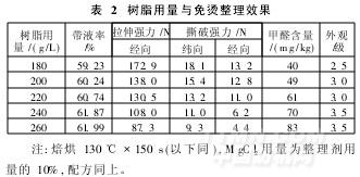 綜合考慮織物的外觀、強力、服用性能和經濟因素,樹脂濃度不易過高,因此選擇AP濃度220g/L為較佳工藝處方。