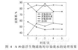 2.3 A/O懸浮生物濾池對實際印染廢水的處理效果