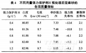 不同用量強力保護劑H預處理后亞麻紗的各項質量指標見表4.