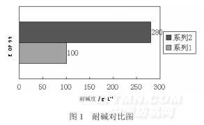 OP99成分為異辛醇聚氧乙烯醚磷酸酯,屬陰離子表面活性劑,具有良好的耐酸、堿、硬水和無機鹽、耐高溫特性,經過大量實驗發現,異辛醇磷酸酯具有較高的滲透力,極低的泡沫,但耐堿度只能達到100g/LNaOH,而異辛醇聚氧乙烯醚磷酸酯具有極高的耐堿力(耐堿度可達280g/LNaOH),但弱堿條件下的滲透力一般,泡沫一般,采用兩者復配的方法,取得了較高的耐堿力和滲透力,極低泡沫。結果見圖1、表1、表2。