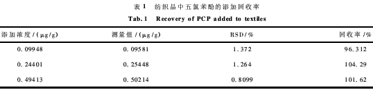選取市場上白色棉布、藍色印染棉布以及印花棉布,經過本方法檢測,五氯苯酚均未檢出。