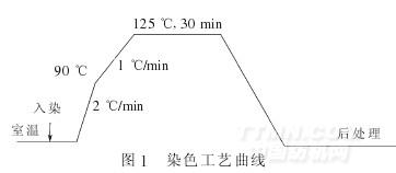 滌綸是一種重要的合成纖維,其優點是機械強度高、耐磨、耐酸堿、化學穩定性強、不易霉蛀等[1]。低聚物是滌綸生產過程中對苯二甲酸和乙二醇在縮聚反應中形成的低分子量副產物,其平均含量達到1%~3%,大多在纖維內部。低聚物具有較高的化學穩定性和熱穩定性,易聚集和結晶。染色過程中,低聚物從滌綸內部遷移到纖維表面,引起染料富集于低聚物,而低聚物粘附在纖維表面,會出現染料色點、色花等現象,影響手感、外觀。低聚物沉積在設備的不同部位,易形成難于去除的污垢,使得織物染色時易產生缸差,同時還限制了正常的液流速度,導致染色不均勻,重現性差。滌綸染深色特別是黑色時,低聚物的影響更為顯著,是染廠中常見的問題。此外,低聚物在織物表面形成“浮色”,對滌綸織物的色牢度有一定的影響。去除低聚物可采用幾種方法:降低染色溫度,清洗設備,高溫排液,還原清洗和染色助劑等[2]。本文采用不同的工藝處方染色織物,并在相同工藝升溫曲線下探討低聚物去除劑的應用效果。