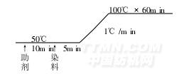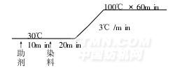 染畢,先于70℃下水洗15min,然后于90℃下皂洗30min。皂洗液由1.5%(owf)的復(fù)合表面活性劑SKDⅢ(其凈洗能力較普通表面活性劑的凈洗能力強(qiáng))與水配成,用純堿調(diào)節(jié)pH值至8.5。水洗、皂洗的浴比均為50∶1。