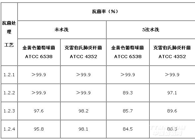 送SGS上海分公司檢測,按照AATCC 100-2004和JIS L1902-2008兩種測試標準測試試樣的抗菌性能。洗滌方法按AATCC 135-2004,進行水洗5次,具體水洗條件如下:(1)ⅡA(i),在4lb的負荷和85℉的溫度下機洗,正常循環,滾筒烘干。