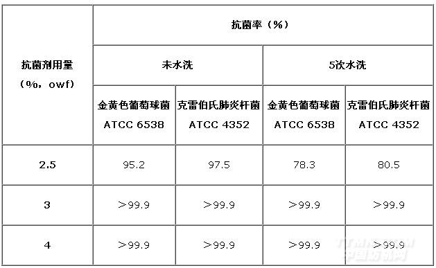 從上表看出,抗菌劑的用量低于3.0%(owf)時,抗菌棉紗的抗菌率和洗滌之后的抗菌率均較低,不能滿足客戶的高要求。