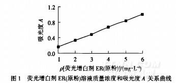 熒光增白劑ER原粉的生產(chǎn)企業(yè)可在此適宜的質(zhì)量濃度范圍確定一個質(zhì)量濃度,用作本企業(yè)產(chǎn)品紫外吸收的測定質(zhì)量濃度,如確定熒光增白劑ER(原粉)溶液的測定質(zhì)量濃度為4mg/L