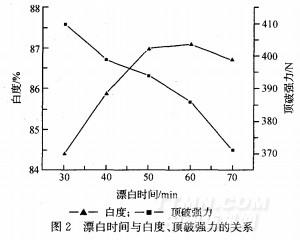 綜合漂白效果和生產(chǎn)成本,漂白時(shí)間不宜超過60min,應(yīng)選為50min左右。