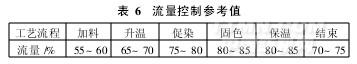 染液采用大流量、高效率及抗氣蝕性強的高比轉速離心泵,進行強制循環。既可根據染色工藝要求控制染液單向或內外向循環,也可將其設計成離心為主、列管熱交換器外置和采用混流的三位一體形式;使其既具有混流泵吸口流量大特點,又具有離心泵出口揚程大的優點。主循環泵變頻調速,通過內外壓差檢測反饋信號,調節主泵轉速,對循環染液進行流量控制,以滿足不同紗線品種及用途的要求,從而提高筒子紗染色的勻染性和染色質量。依托先進的染整設備,可以在受控情況下實現以最少的流量進行優質、低耗的筒紗染色。若設計流量為100%,染色各階段的流量控制參考值見表6。