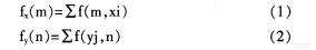 式q~F(m,xi),F(yj,n)分別為緯、經紗線方向灰度累加運算直方統計值:n為累加次數。